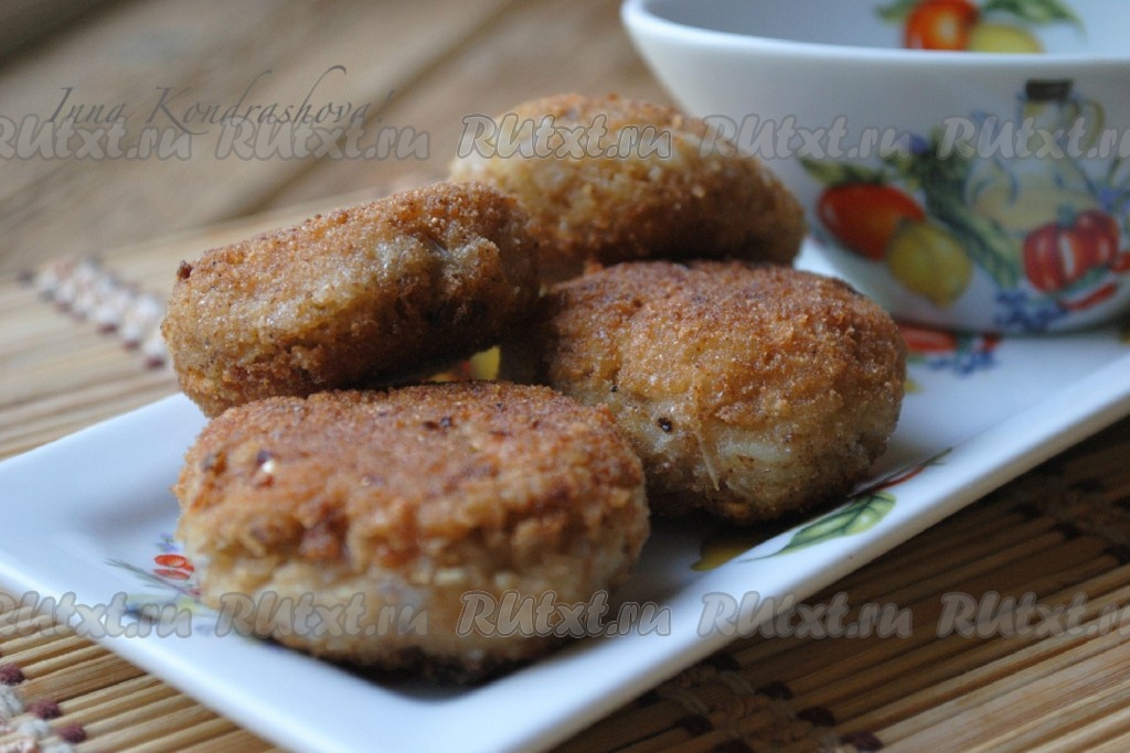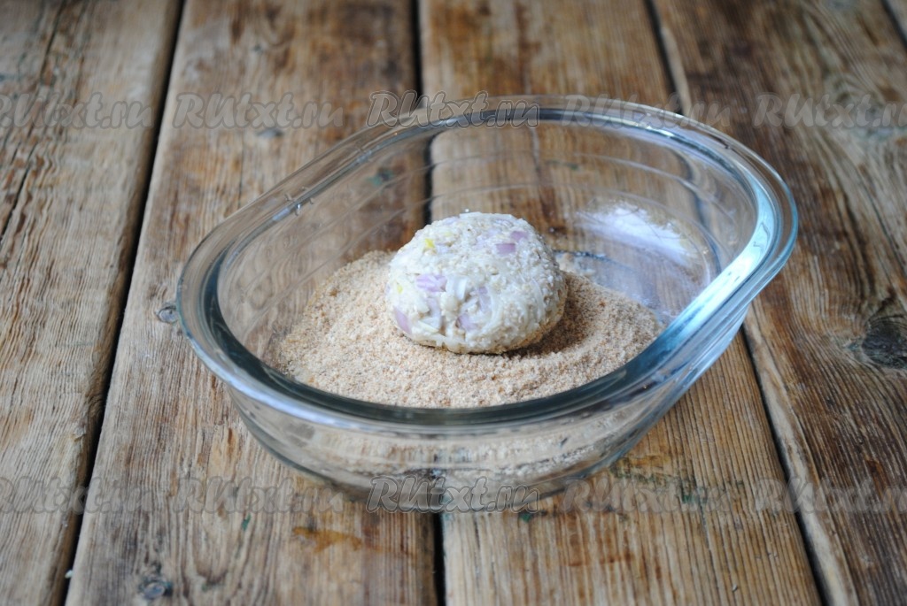 Мокрыми руками сформировать из овсяной массы небольшие котлетки. Обвалять котлеты в панировочных сухарях.
