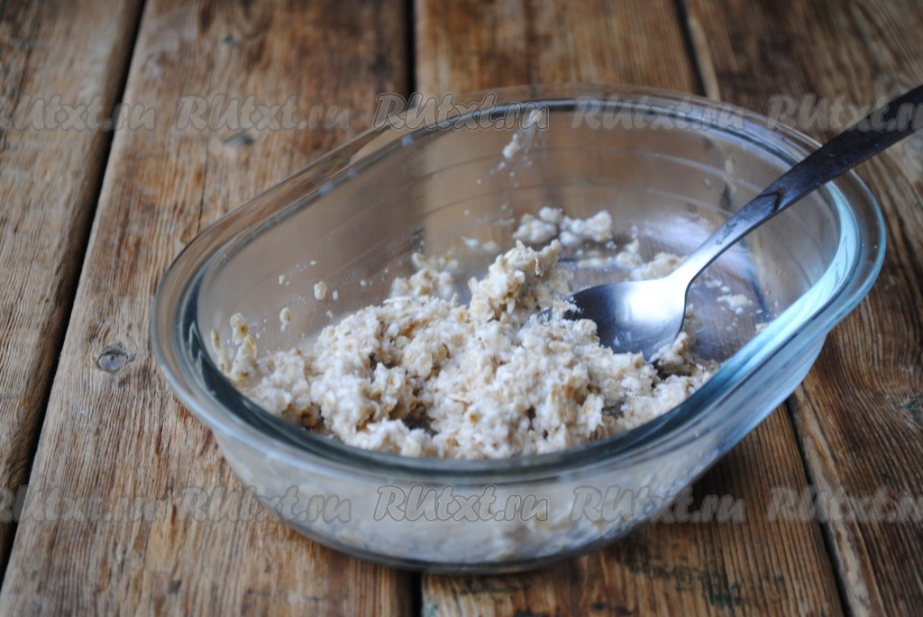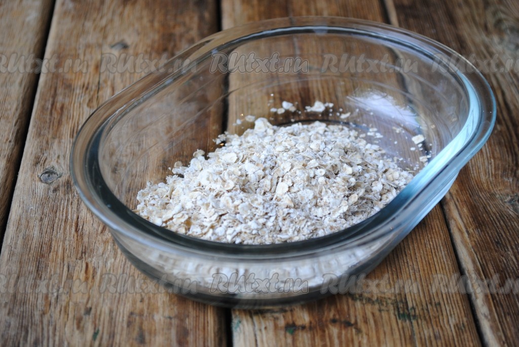 Овсяные хлопья (я использовала хлопья быстрого приготовления) высыпать в миску.