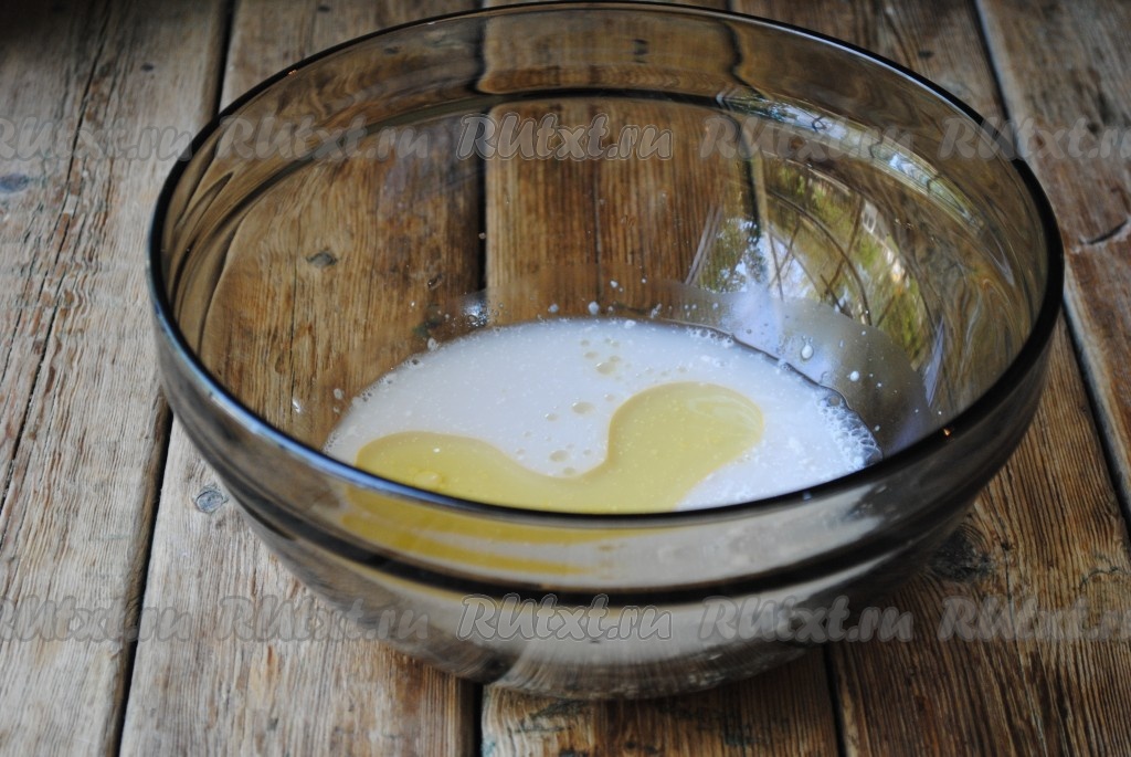 Затем к "ожившим" дрожжам влить растительное масло и всыпать соль, перемешать.