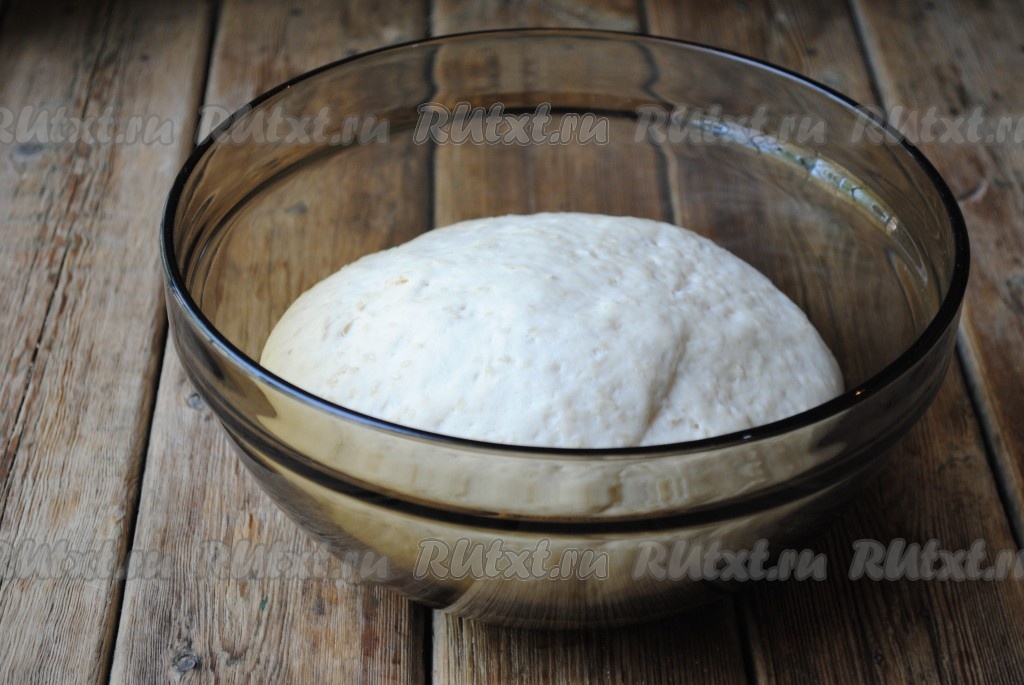 Замесить мягкое, не липнущее к рукам, однородное тесто. Выложить тесто в миску, накрыть полотенцем и поставить в тёплое место на 2 часа.