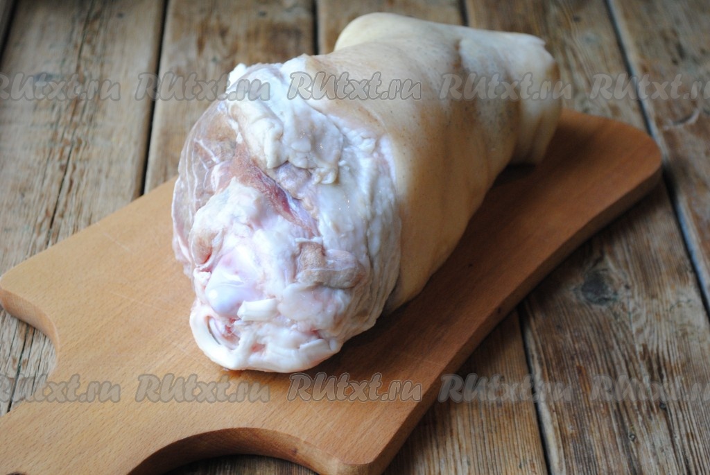 Свиную рульку вымыть, если есть на коже загрязнения - соскрести их ножом.