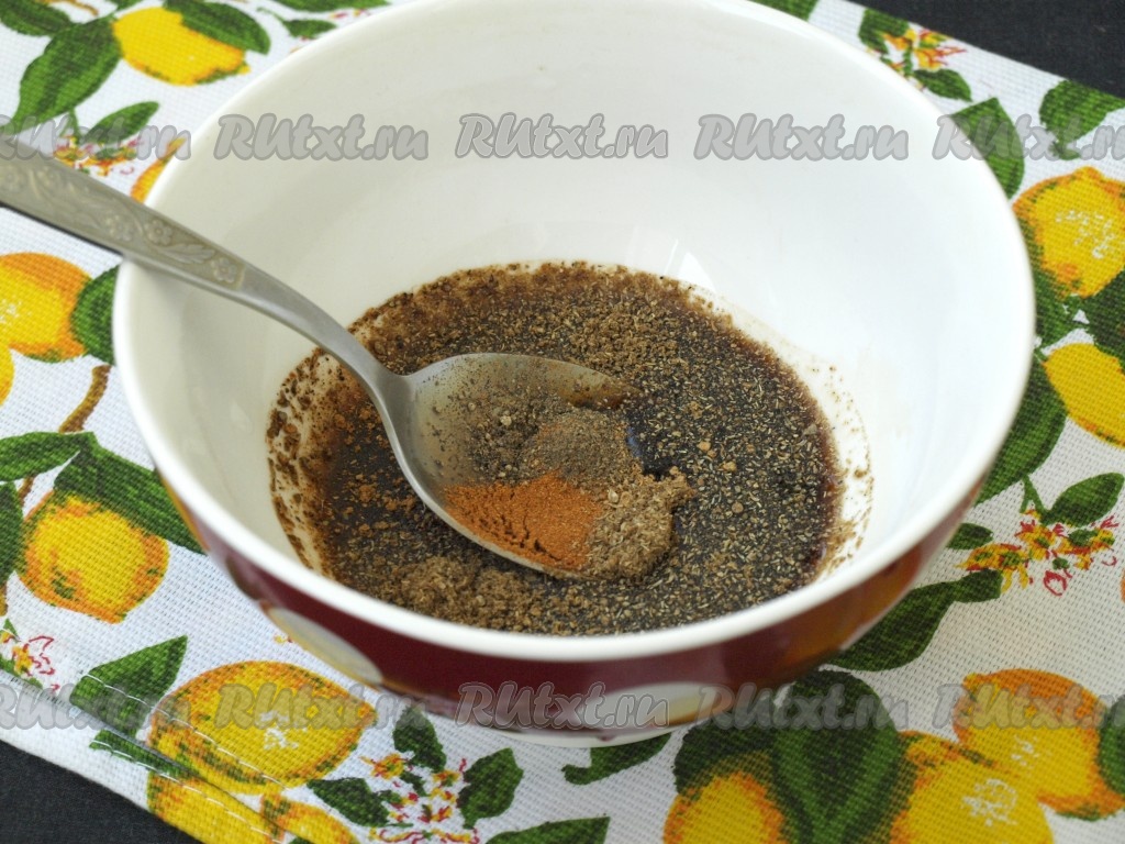 Для приготовления маринада для шашлыка смешать в мисочке соевый и гранатовый соус с соком лимона, затем добавить приправу для шашлыка, чёрный и красный молотые перцы, ещё раз перемешать.