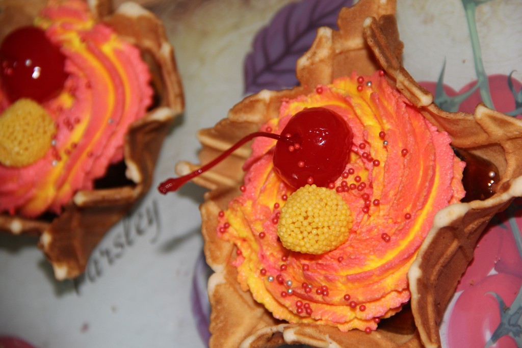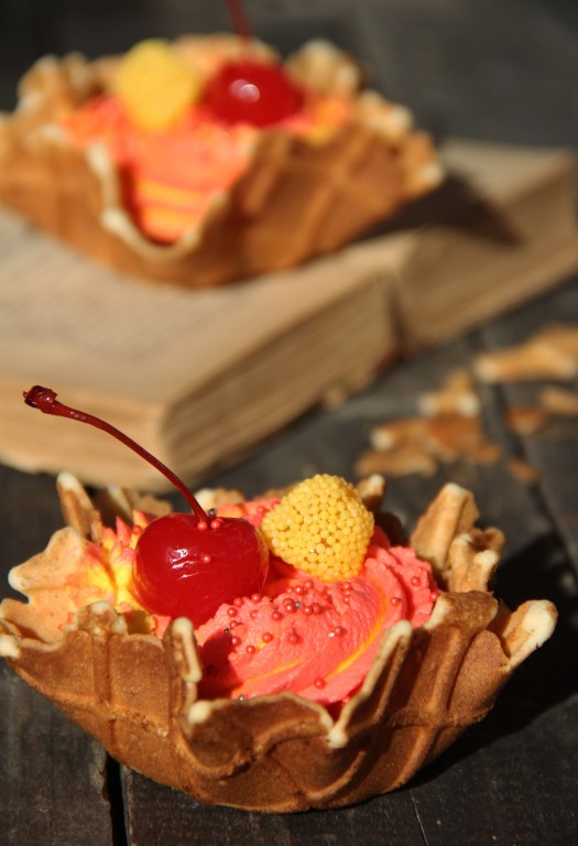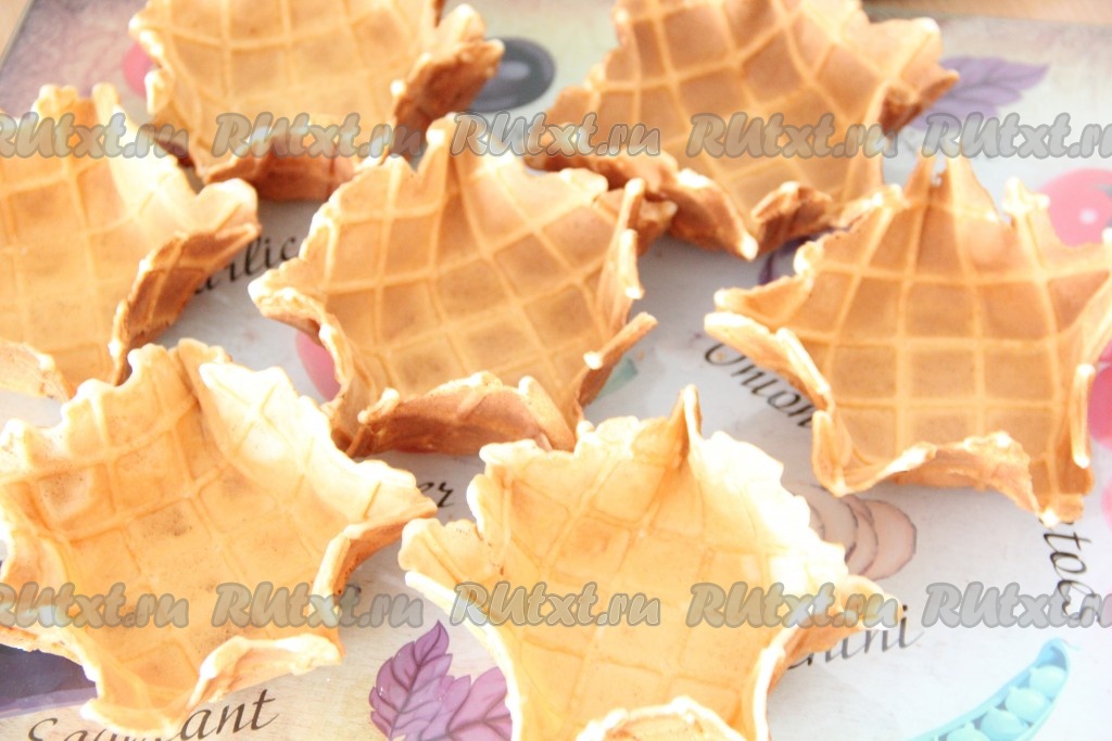 Дать вафельной корзиночке застыть. Готовые корзинки остудить, перед тем как начинить их кремом.