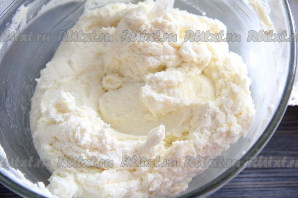 Для приготовления творожно-сливочного крема соединить размягчённое сливочное масло с сахарной пудрой.