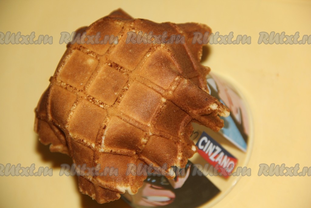 Горячую вафлю быстро выложить на стакан и придать форму будущей корзинке.