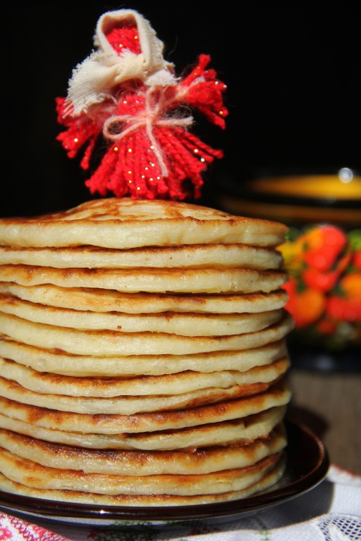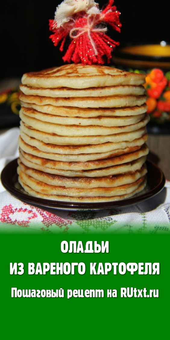 Нежные оладьи, приготовленные с добавлением вареного картофеля, можно подать со сметаной или растопленным маслом.