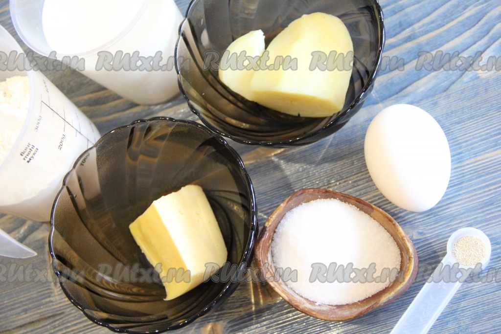 Подготовить продукты для приготовления картофельных дрожжевых оладий.