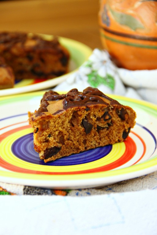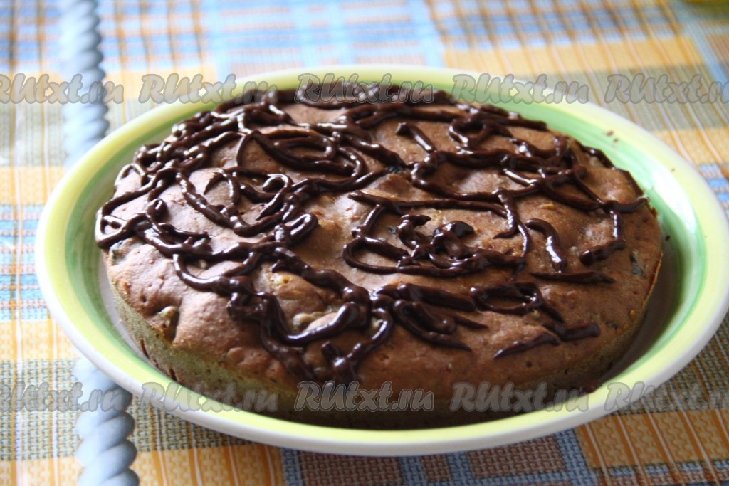 Отправить в разогретую до 180 градусов духовку, выпекать наш постный пирог с черносливом 35-40 минут (до готовности). Остывший пирог украсить на свое усмотрение. Я полила его растопленным шоколадом.