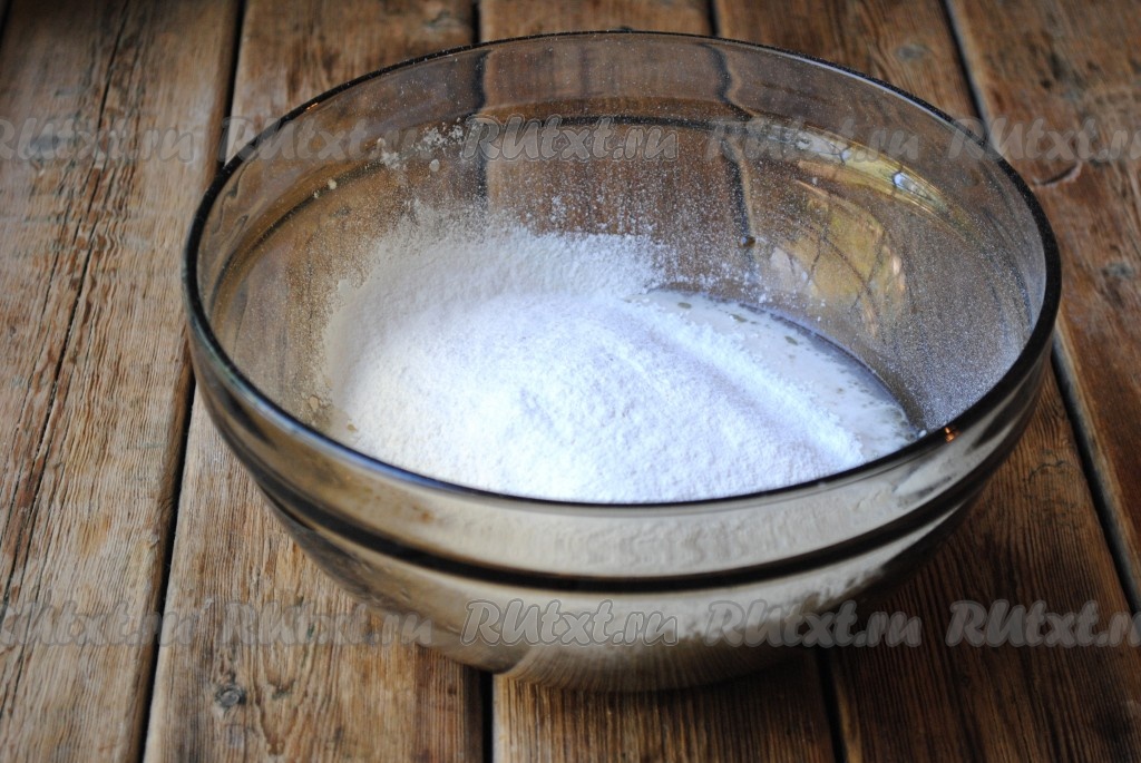 Всыпать 1 стакан просеянной муки из общего количества и перемешать.