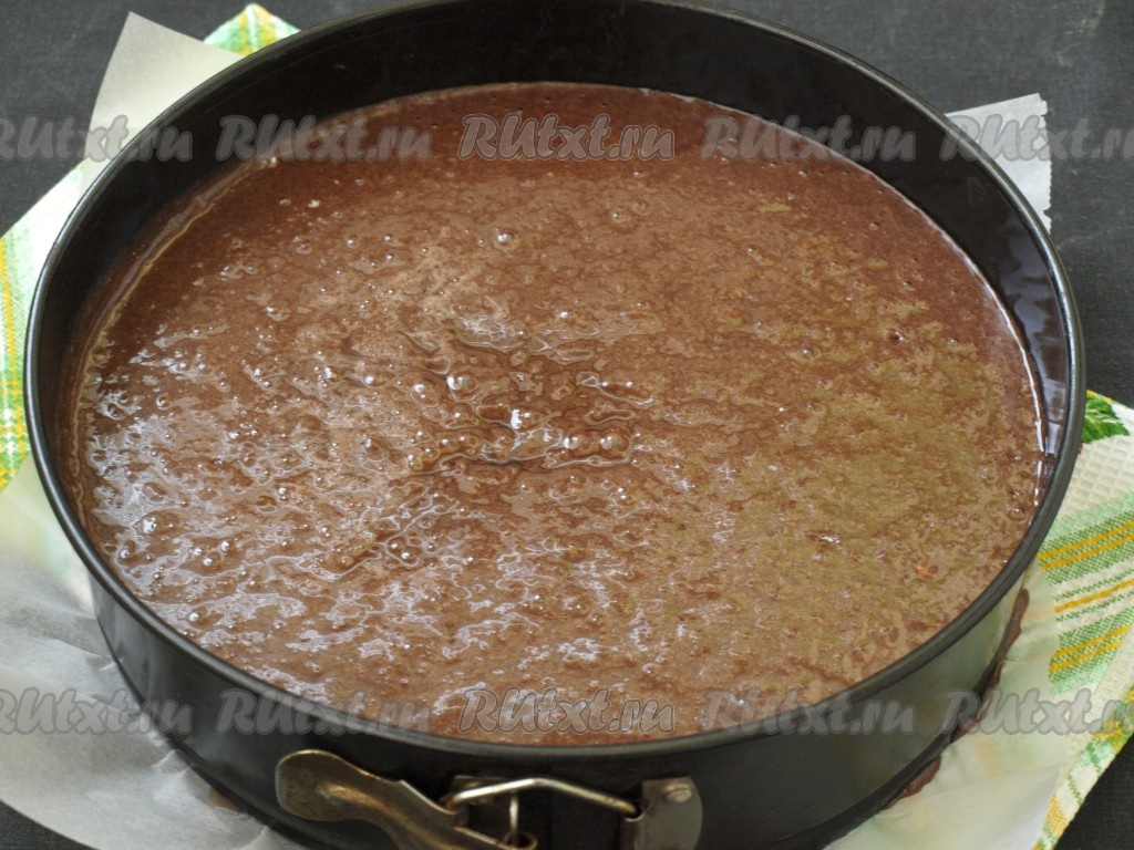 Дно формы диаметром 24 см проложить пергаментом и выложить тесто.