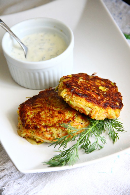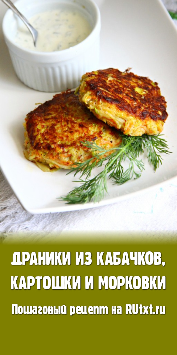 Вкусные и полезные драники, приготовленные из картошки, кабачков и морковки, лучше всего подавать вместе со сметанным соусом.