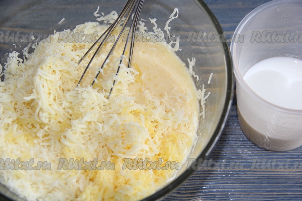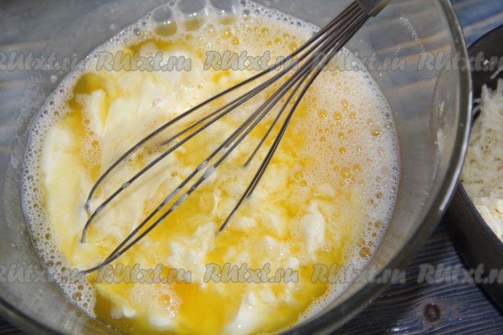 Добавить сыр в смесь яиц и маргарина.