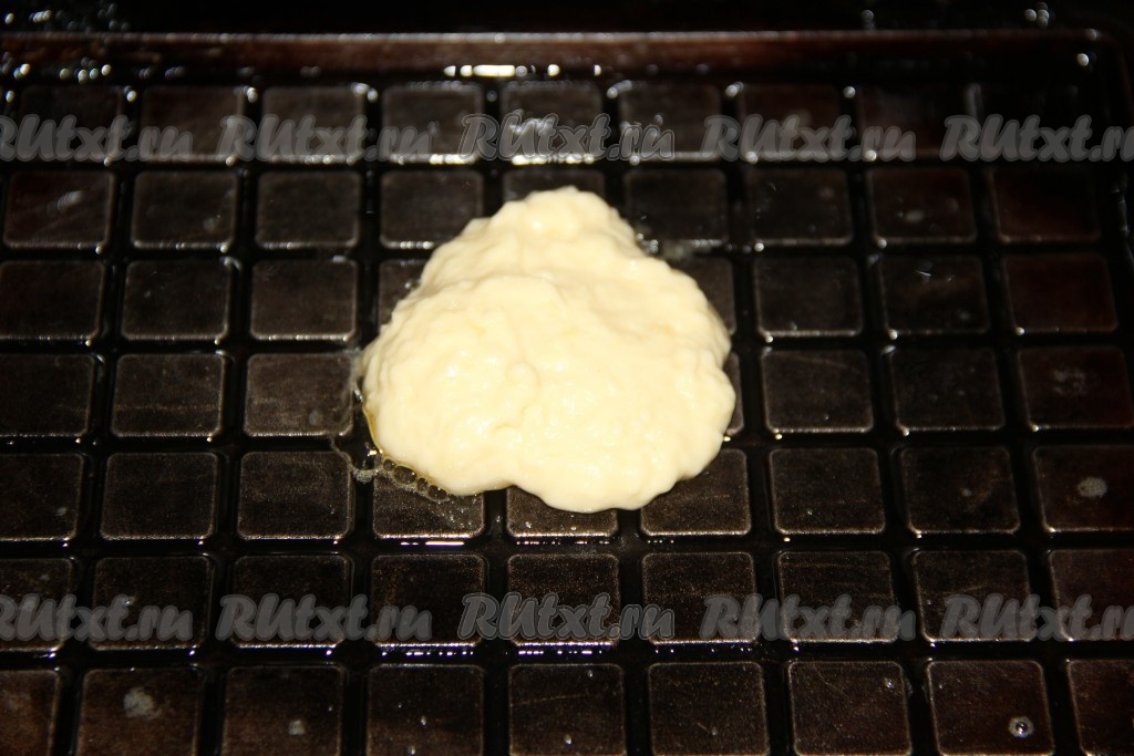 Электровафельницу хорошо разогреть. Выложить 1 столовую ложку теста.