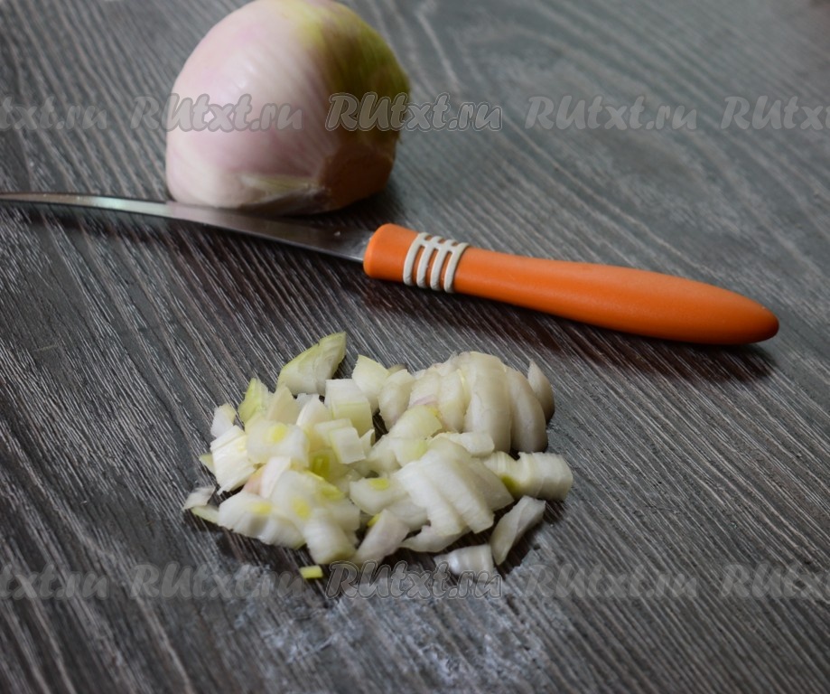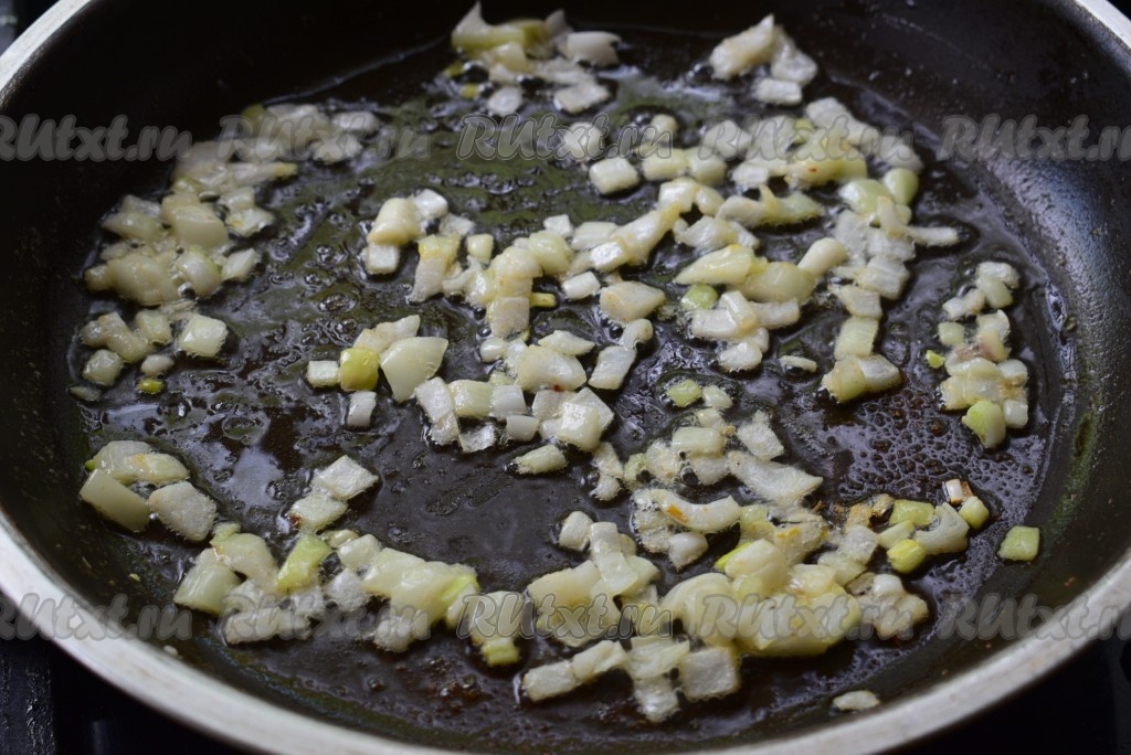 Обжарить лук на слабом огне, помешивая, до золотистого цвета.