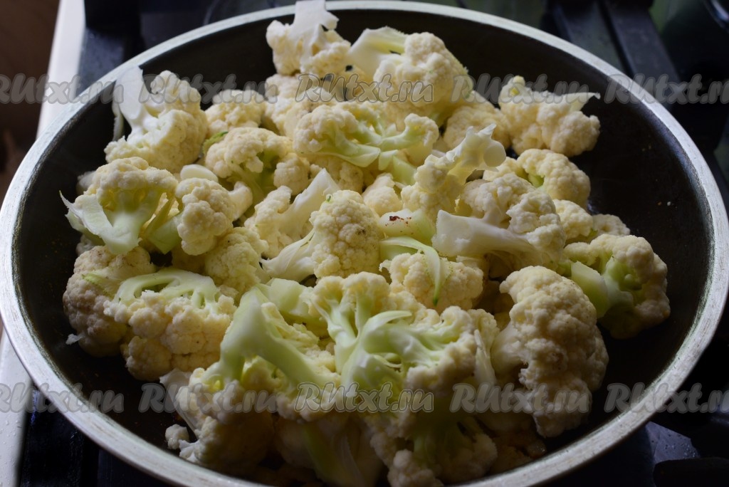 Капусту разобрать на соцветия, крупные соцветия разрезать пополам.