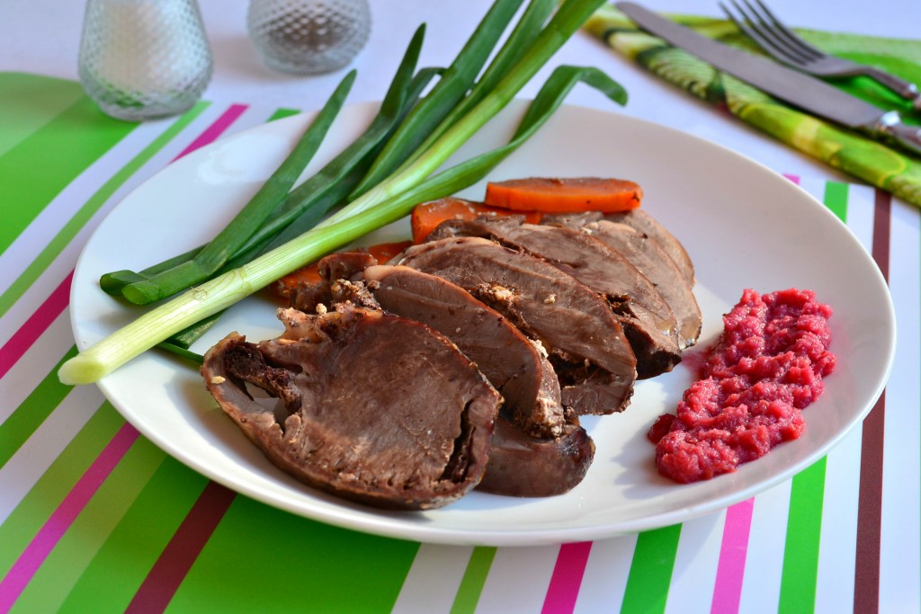 Готовое очень вкусное и мягкое свиное сердце, запеченное в духовке, остудить и нарезать. Подать можно с любимым соусом, хреном, горчицей.