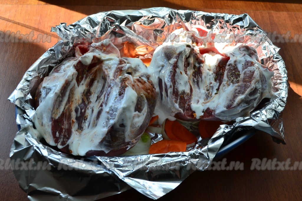 Накрыть форму сверху фольгой и запекать свиное сердце в разогретой до 180 градусов духовке около 1,5-2 часов.