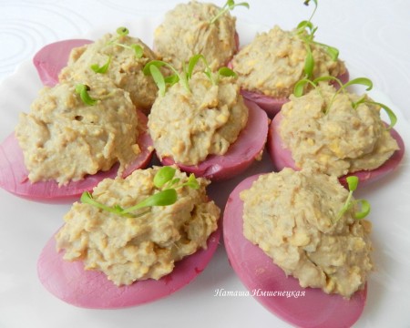 Фаршированные яйца готовятся очень просто, начинка может быть самой разнообразной. Это блюдо всегда эффектно смотрится на праздничном столе. Предлагаю приготовить яйца, фаршированные селёдкой. Получается очень вкусная закуска. А для того чтобы блюдо смотрелось более оригинально, при желании, варёные белки с помощью варёной свеклы можно окрасить в розовый цвет. Уверена, эта простая и вкусная закуска понравится многим!