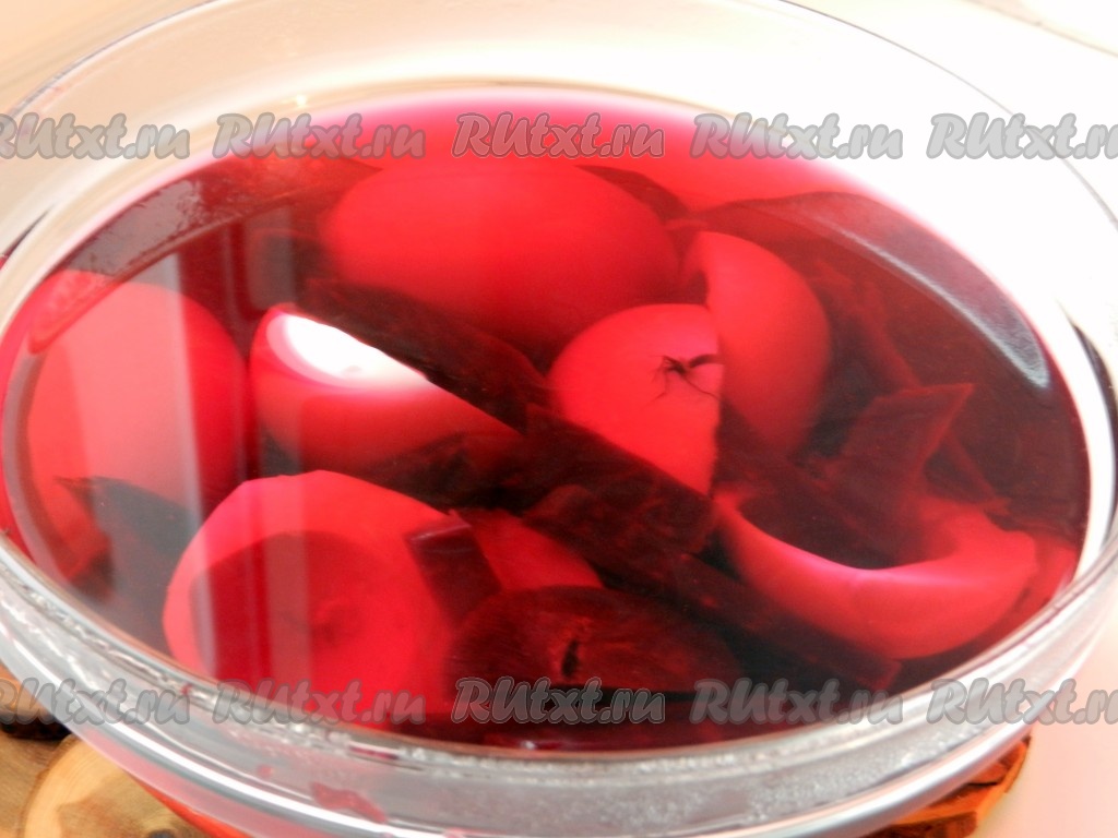 Варёную свеклу очистить, нарезать брусочками, выложить в глубокую миску, залить кипятком. В миску со свекольной водой выложить белки и оставить на 1 час.