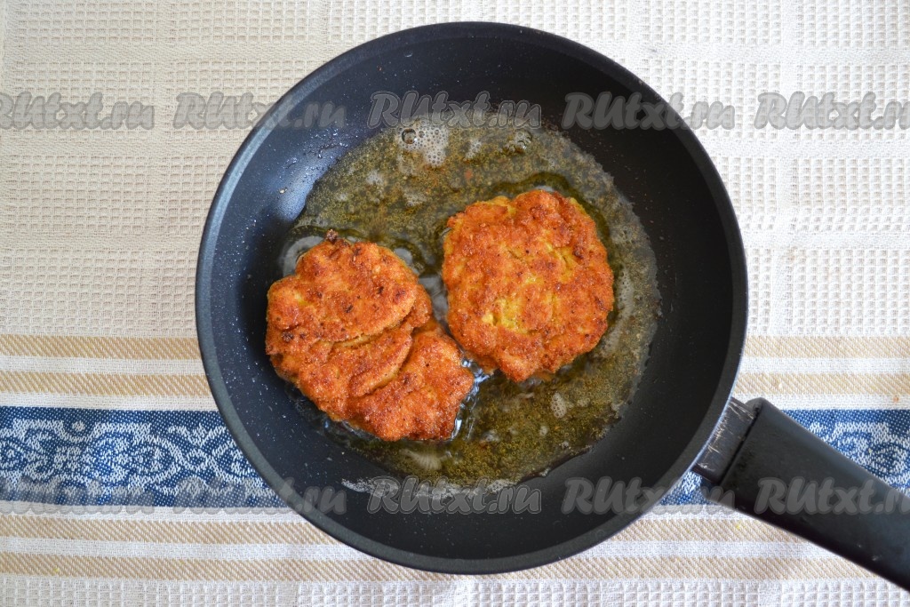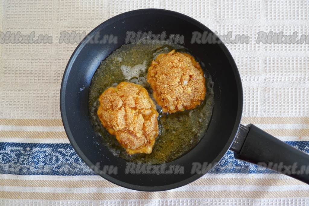 Обжарить на среднем огне с двух сторон до румяного цвета (на это уйдет 10-13 минут).