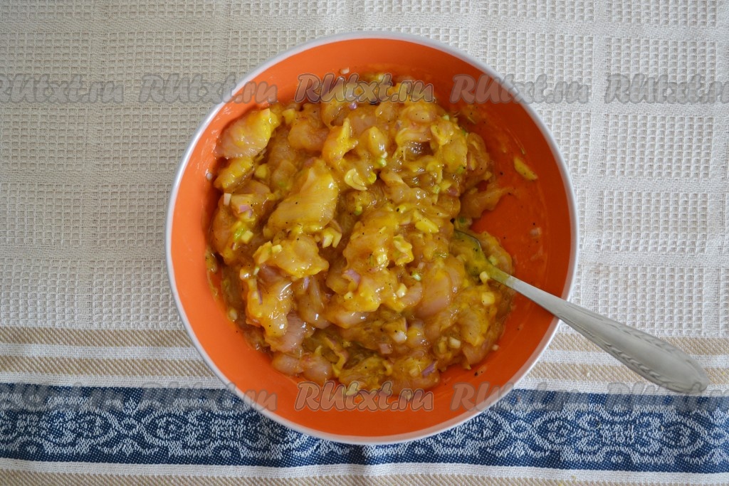 Нарезанное мясо выложить в глубокую миску.