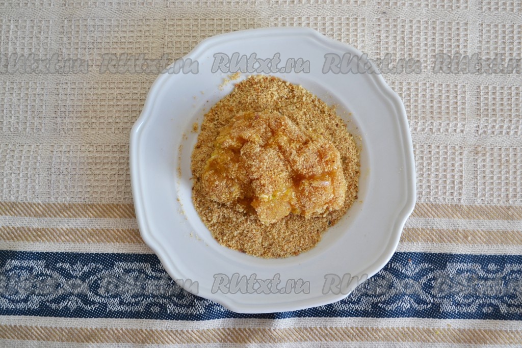 Взять небольшое количество мясного фарша и обвалять его в панировочных сухарях. Я использую сухарики со специями, в состав которых входят красный перец, мускатный орех, кориандр и базилик. Можно воспользоваться обычными сухарями без специй. Аналогично сформировать и обвалять в сухарях остальные сиченики.