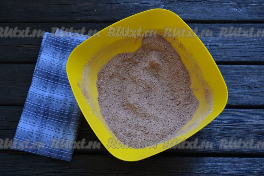 Смесь сухих ингредиентов должна получиться однородной, в ней не должно быть комочков сбитой муки или какао-порошка.