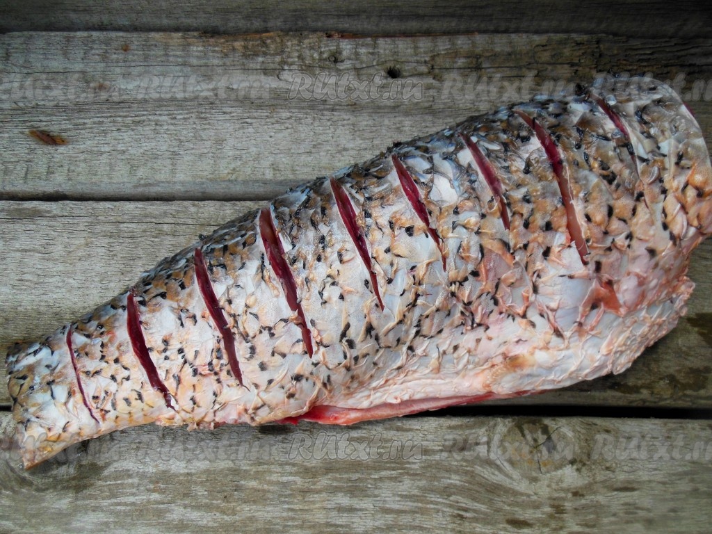 Промойте рыбу в холодной воде, снимите чешую (мне очистили чешую на рынке).
