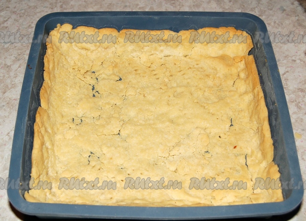 Форму с тестом отправить в заранее нагретую до 180 градусов духовку на 10-15 минут, выпекать до полуготовности коржа.