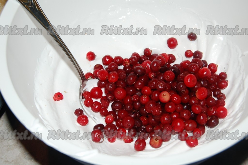 К оставшимся взбитым белкам добавить свежую клюкву.