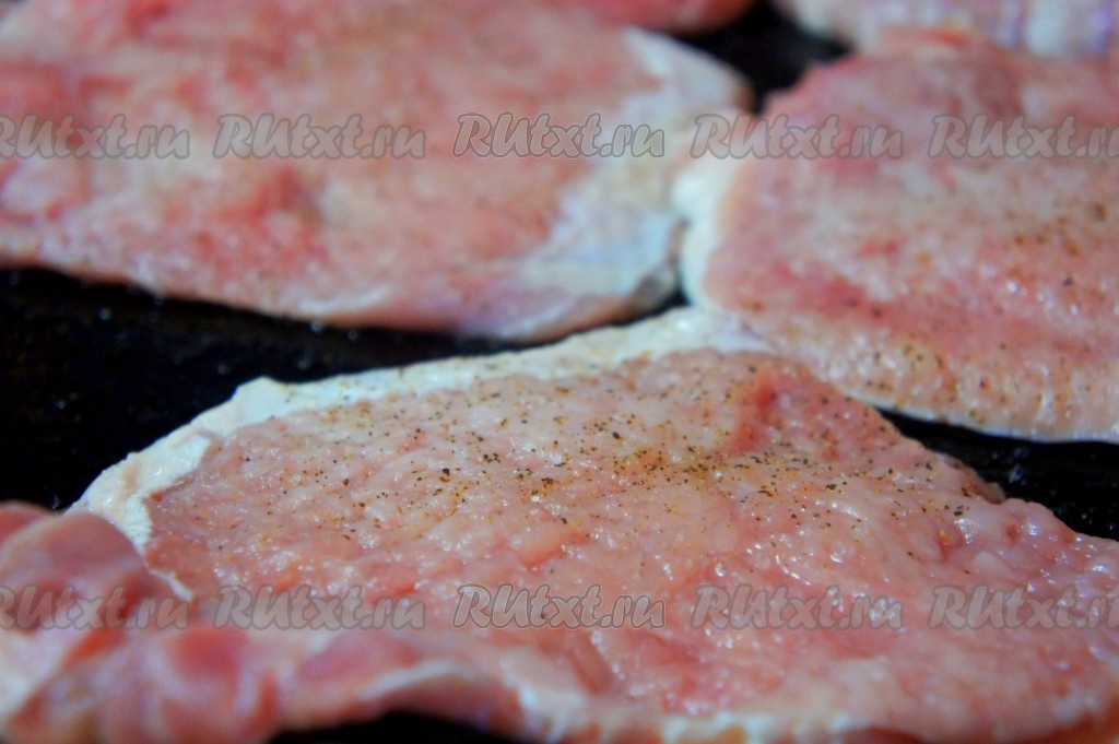 Мясо отбить, посолить, поперчить, оставить на 10 минут.