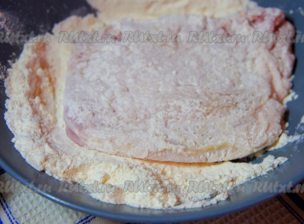 Разогреть на сковороде растительное масло. Обжарить мясо с двух сторон на медленном огне, накрыв крышкой, до готовности. Выложить обжаренное мясо в кляре на бумажную салфетку, чтобы удалить излишки масла и сразу подавать горячим.