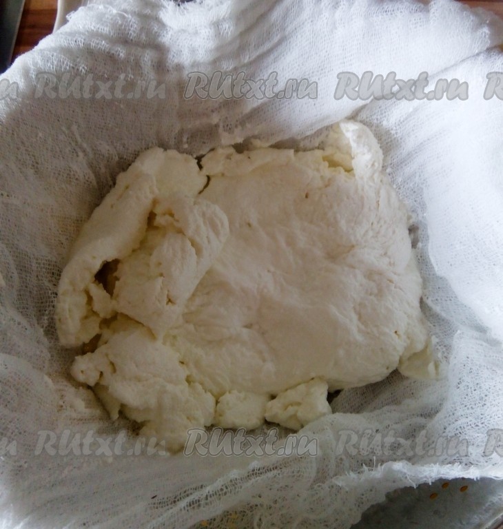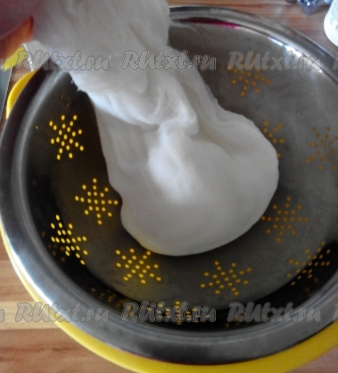 Края марли завернуть и слегка отжать творог.