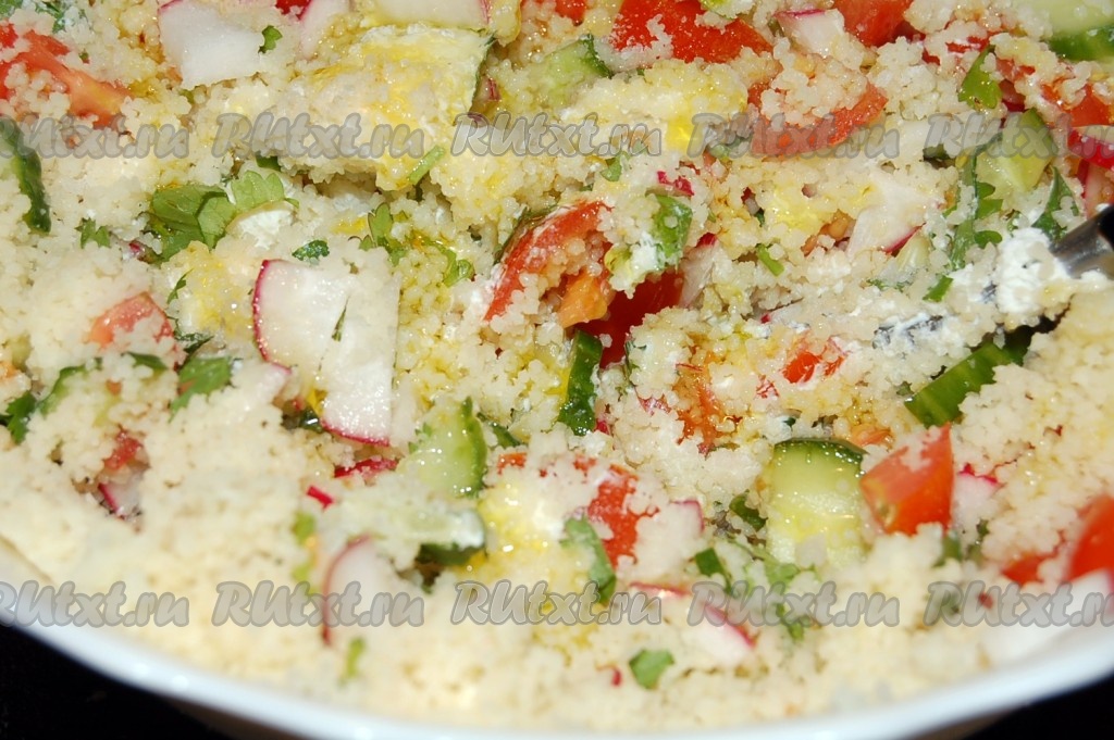 • Предлагаю приготовить рецепт несложного салата с кускусом, помидорами и оливками. ...