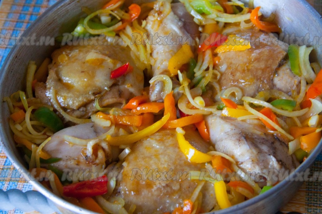 Курица, запеченная с болгарским перцем в духовке, получается очень вкусной и ароматной.