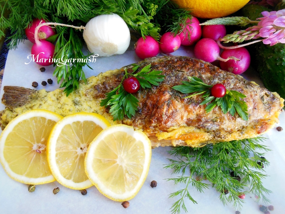 Сегодня хочу поделиться рецептом приготовления очень вкусных карасей в сметанном соусе. Рыба предварительно обжаривается, а затем заливается сметанной заливкой и томится в духовке. Караси получаются нежнейшими, их потрясающий вкус, наверняка, многим знаком с детства. Моя бабушка, например, готовила их в печи. Из специй я добавляю лишь черный перец, который растираю непосредственно перед приготовлением рыбы и обязательно лимонный сок. Попробуйте, это очень вкусно!