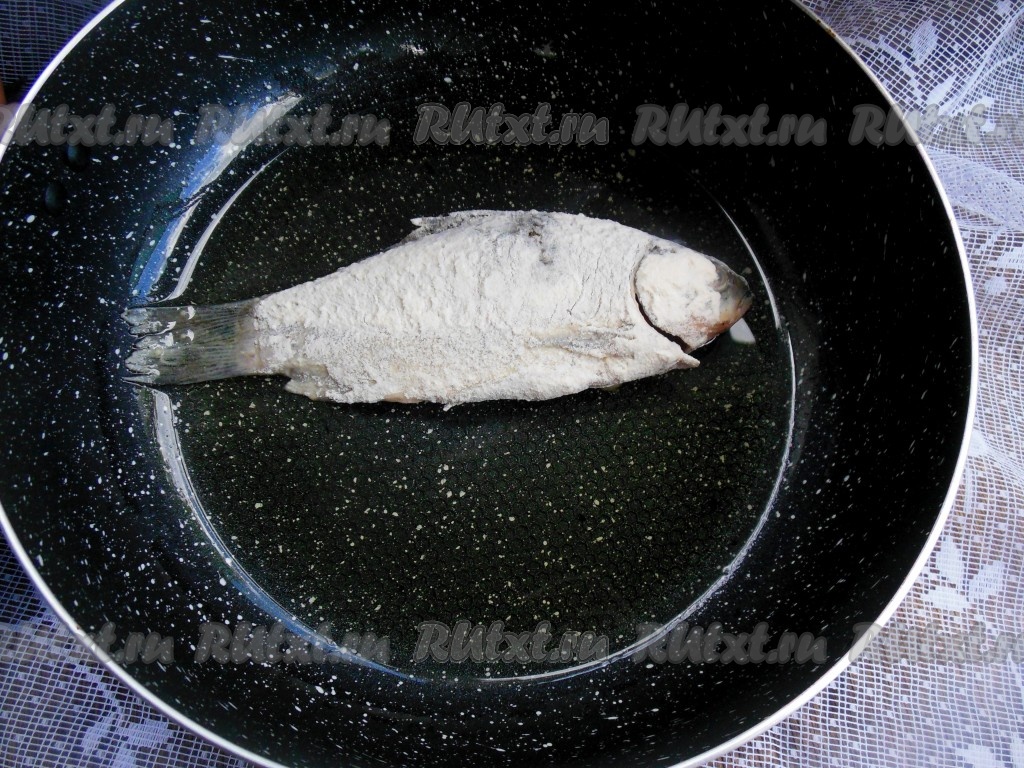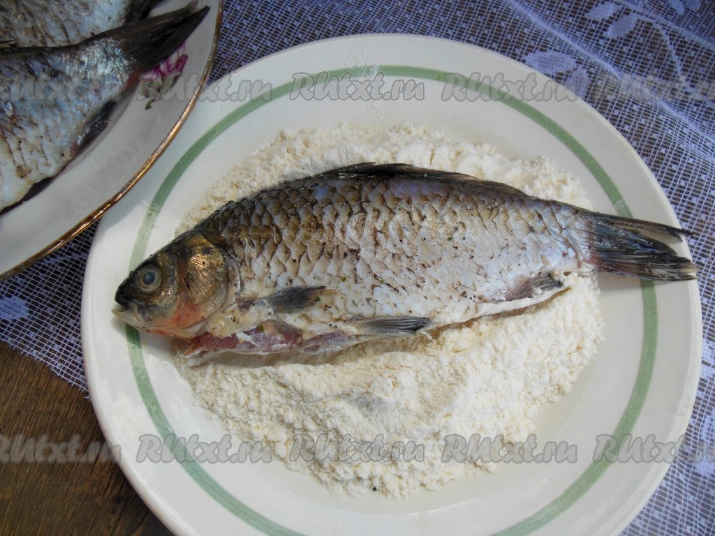 Затем обваляйте каждого карася в муке, лишнюю муку струсите.