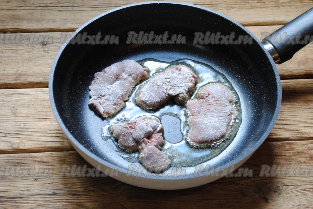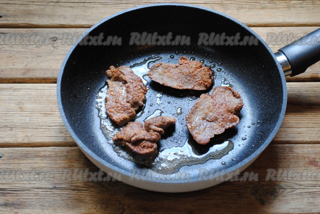 Сковороду разогреть с небольшим количеством растительного масла. В горячее масло выложить печень.