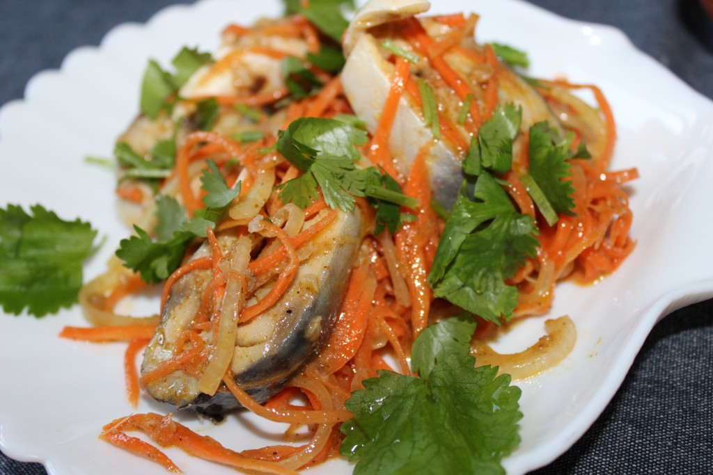Предлагаю рецепт приготовления хе из скумбрии - это великолепная холодная рыбная закуска. Готовится очень быстро и просто, а затем нужно пару часов дать рыбке промариноваться и можно наслаждаться прекрасным блюдом. Хе из скумбрии можно приготовить на праздничный стол или к повседневному ужину или обеду.