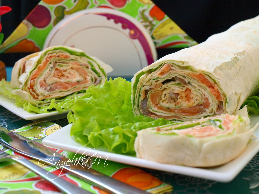 В выходные праздновали день рождения сына и я приготовила на стол рулет из лаваша с семгой и творожным сыром. Эта закуска всегда актуальна. В этот раз я кроме творожного сыра использовала ещё и мягкий плавленный сыр, получилось очень интересное сочетание. Если нет двух видов сыра, можно попробовать ограничиться творожным сыром. Дополнила рулет тонко нарезанными кружочками свежего огурца. Очень советую попробовать!