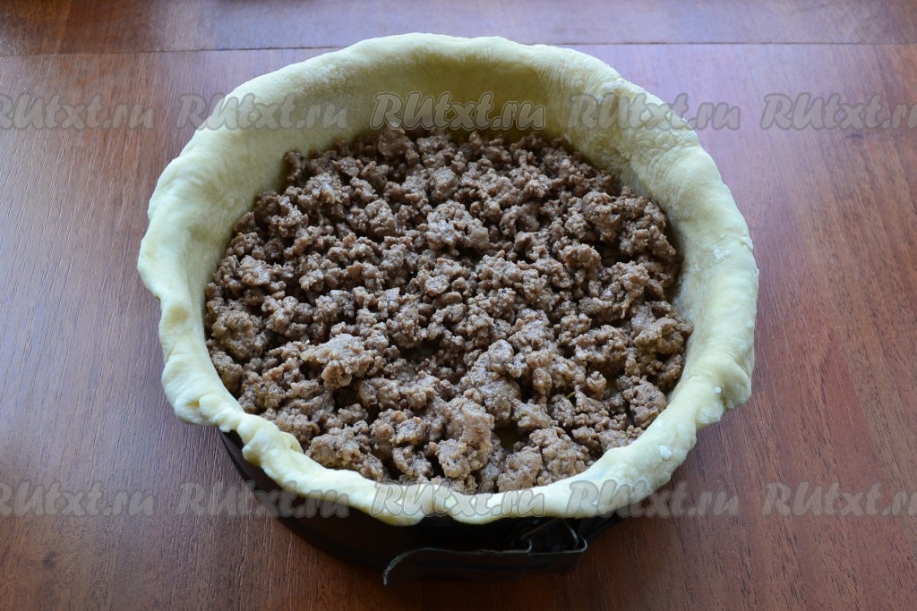 На дно формы с тестом выложить подготовленный фарш.