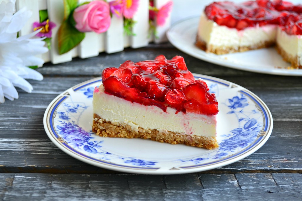 Творожный чизкейк с клубникой - необыкновенно вкусный, ароматный, нежный десертный пирог, который несложно приготовить любой хозяйке. Чизкейк можно предложить своим родным и гостям как в будни, так и в праздники. Клубнику нужно использовать только свежую, замороженная - потеряет свой вид. Попробуйте обязательно этот чизкейк - настоящее блаженство вкуса!