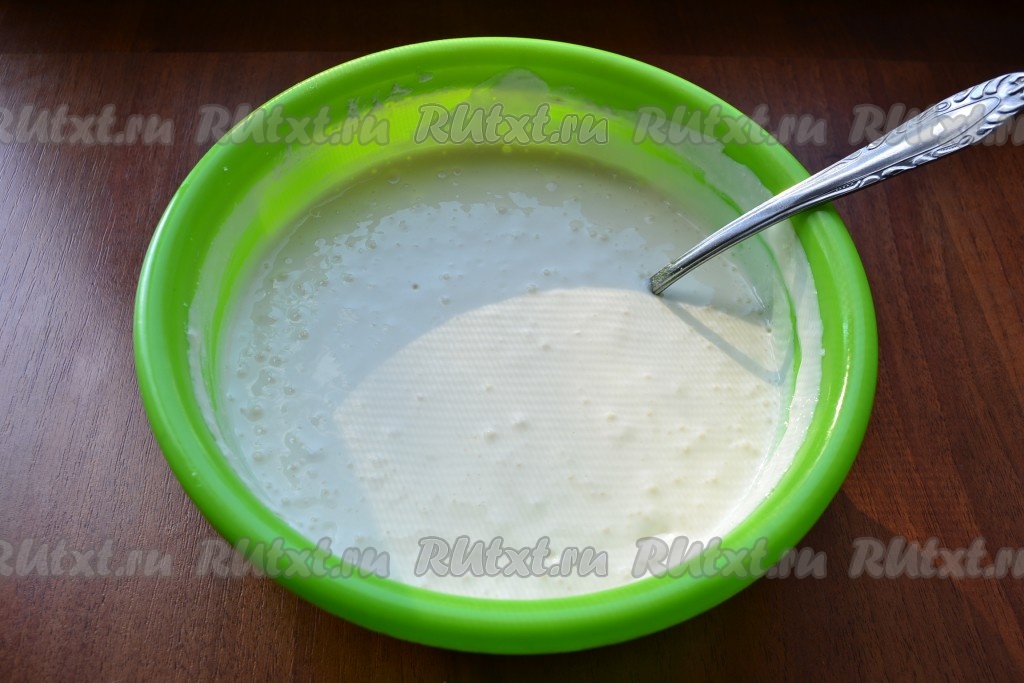 Добавить в массу щепотку лимонной кислоты и крахмал, ложкой все тщательно перемешать. Масса получится жидковатой, похожей на бисквитное тесто.