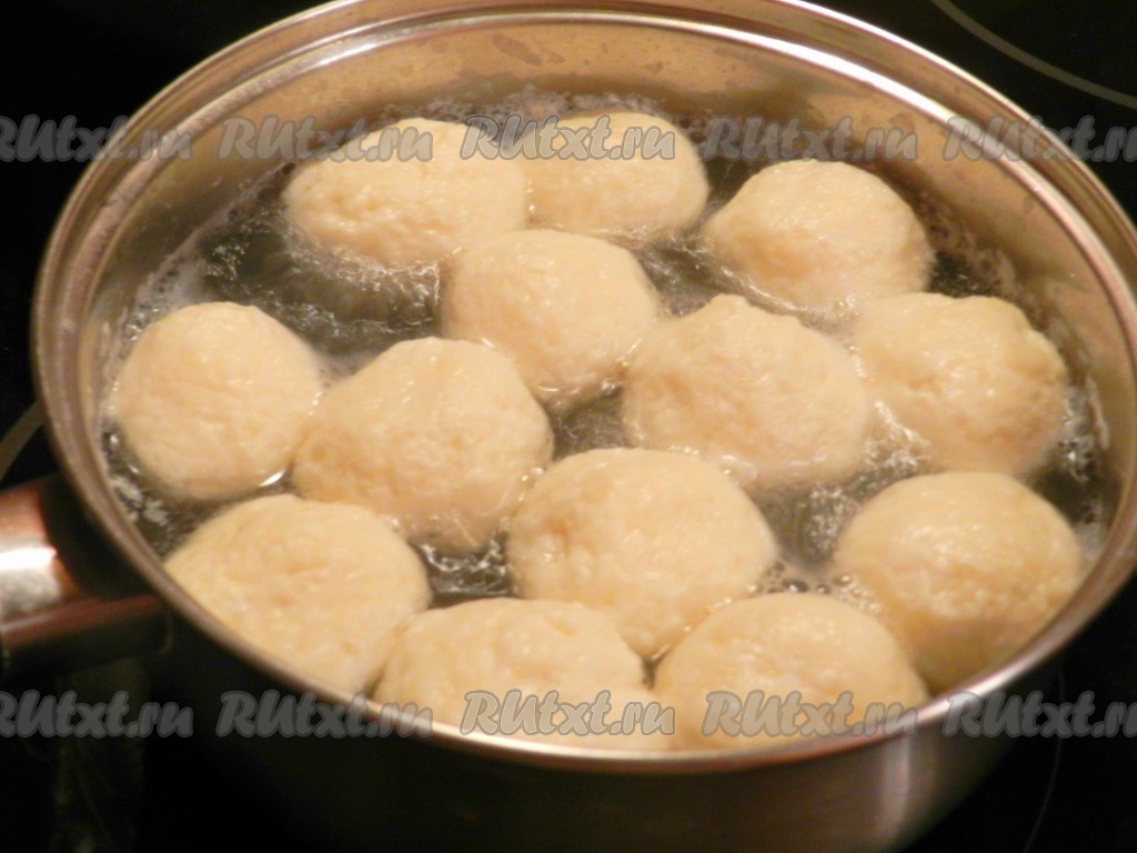 Ленивые вареники, слепленные из творога, опустить в кипящую подсоленную воду, когда они всплывут, поварить еще 1-1,5 минуты.