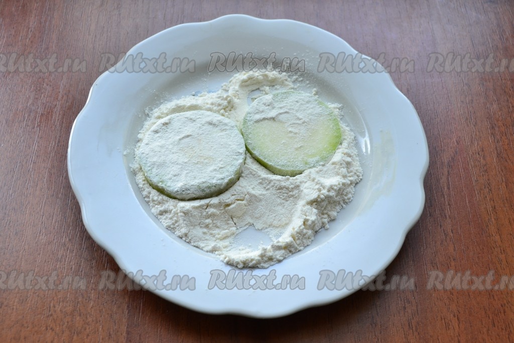 Немного кабачки посолить и обвалять в муке.