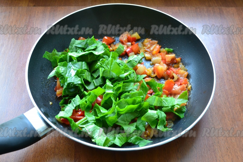 Добавить к овощам шпинат (если крупные листья - нарезать их).