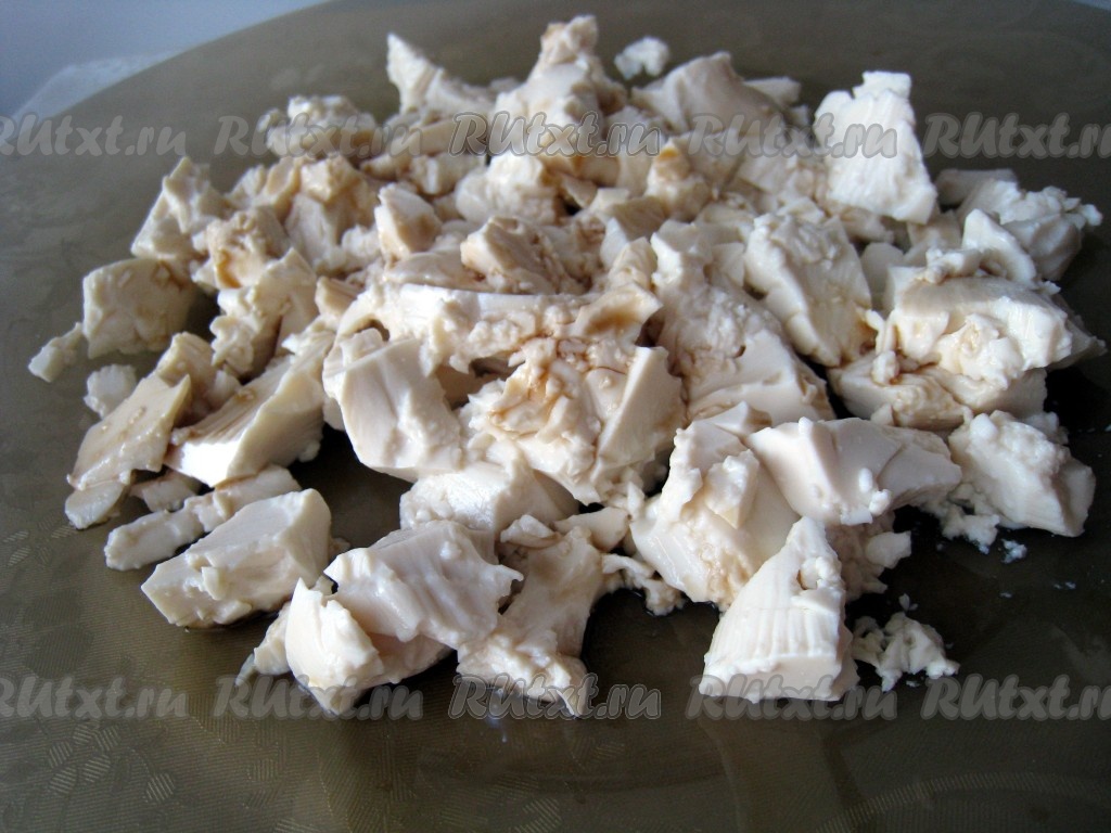 Тофу поломать на кусочки, побрызгать соевым соусом и оставить промариноваться.