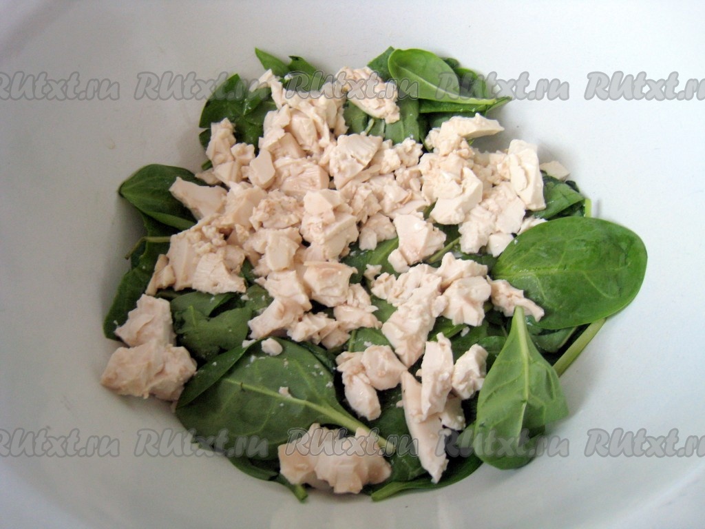 В салатник положить листья шпината, на них сыр тофу и встряхнуть.