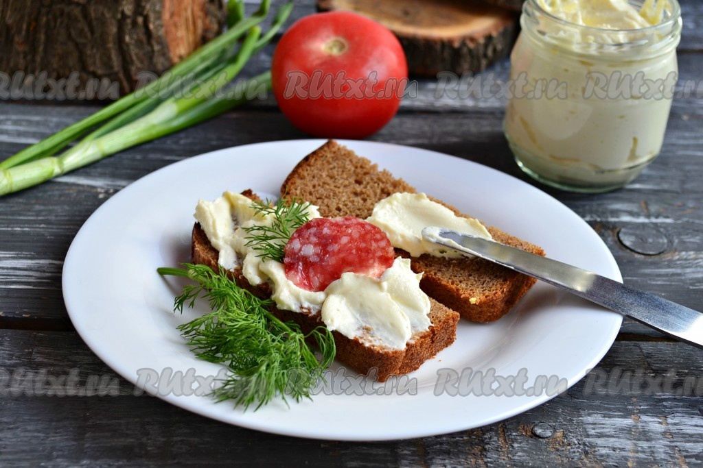 Вкусному и нежному сыру "Филадельфия", приготовленному в домашних условиях, дать полностью остыть и можно использовать, добавляя в него то, что вам нужно. Я добавила в первом случае соль и немного чеснока и использовала сыр для бутербродов.
