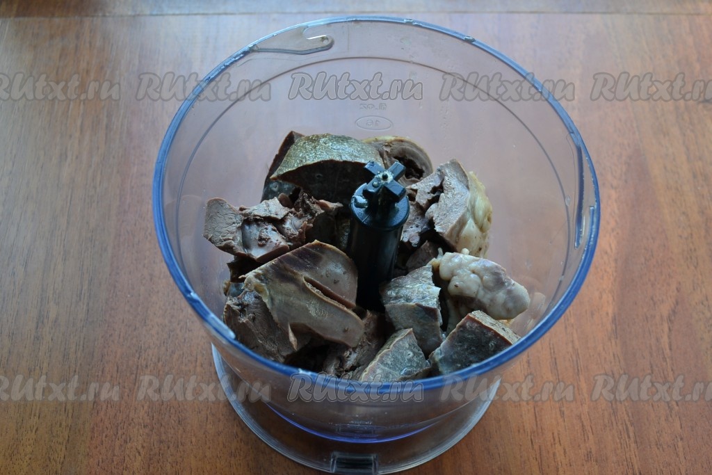 Для приготовления начинки легкое и сердце отварить в подсоленной воде в течение 1-1,5 часов, остудить. Нарезать легкое и сердце кусочками, поместить в чашу блендера.